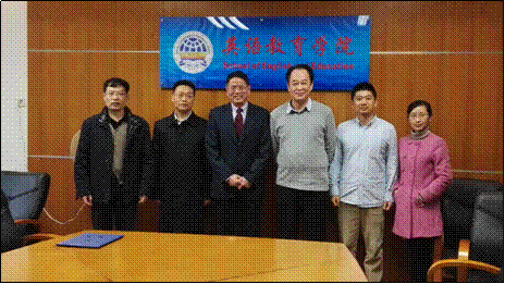 冯安伟教授(左三)、胡光伟教授(左四)和学院领导教师合影