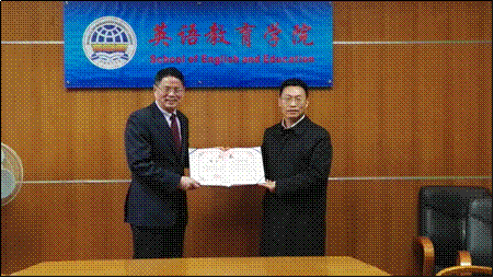 讲座结束时,董金伟向冯安伟教授授予“广东外语外贸大学客座教授”荣誉证书。