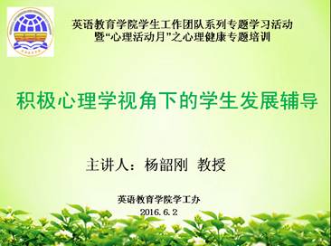 2016年6月2日,线路检测中心开展js3333线路检测中心学生工作团队系列专题学习活动暨“心理活动月”之心理健康专题培训,特邀我校政管学院教授、博士生导师杨韶刚带来“积极心理学视角下的学生发展辅导”的专题讲座。js3333线路检测中心党委书记林绍雄、党委副书记徐昶斌,辅导员迟殿凤、林泽龙,以及学院各年级心理委员、宿舍长、2016级新生朋辈导师参加了此次讲座。