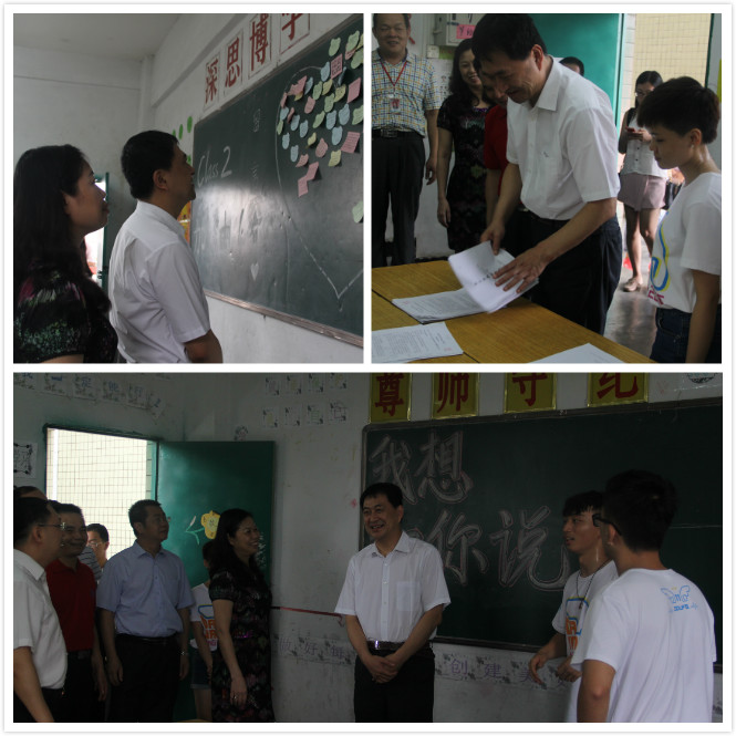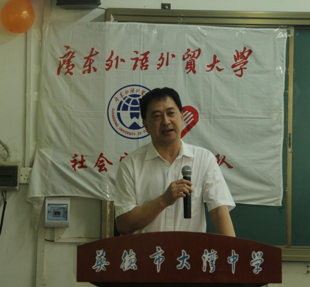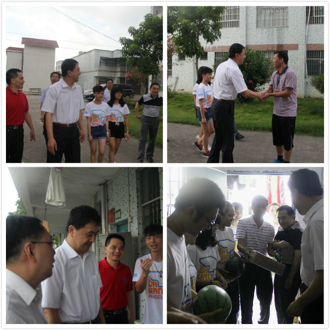 2016年7月27日,广东外语外贸大学党委书记隋广军和党委常委、副校长刘海春,在校党委组织部部长方迎生、校团委书记苏奕和js3333线路检测中心党委书记林绍雄的陪同下,来到清远英德市大湾镇,看望和慰问在大湾中学开展三下乡活动的js3333线路检测中心学生。隋书记参观学生教学与住宿环境,观摩三下乡闭幕式,并在闭幕式上发言,肯定了大湾队的三下乡成果。英德市副市长陈坚英、教育局局长郑中重、大湾镇党委书记陈斌、大湾中学校长黄亚清也参加了此次活动。