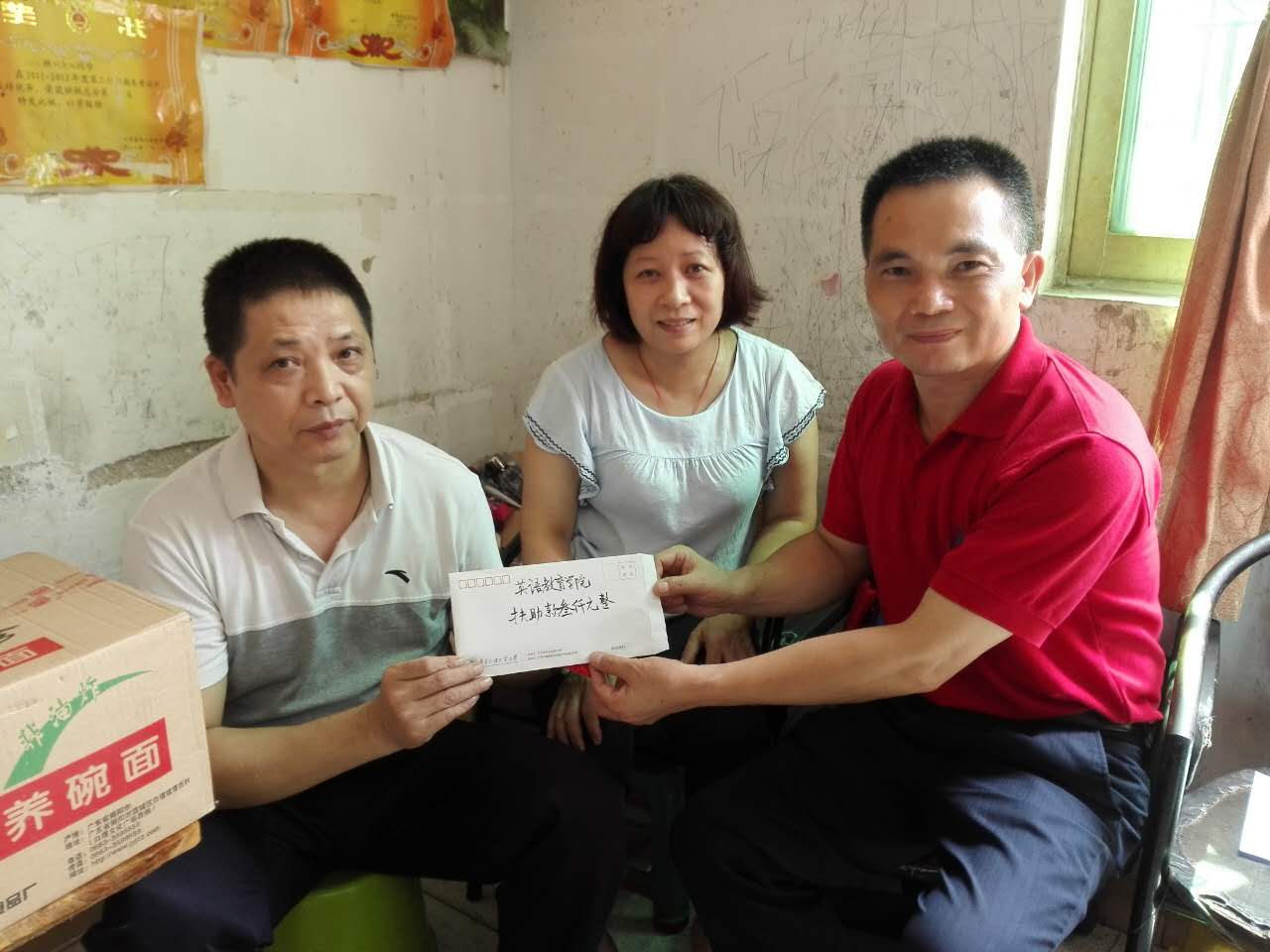 9月11日上午,学院党委书记林绍雄、副书记徐昶斌代表学校和学院前往番禺市桥沙头村,与线路检测中心结对负责的精准扶贫对象(欧什养,共产党员、退伍军人,阳山岭背镇蒲芦洲村塘寮村村民)进行了沟通协商和深入交流,共同探讨脱贫增收的途径和办法,并送去了学校的慰问品、慰问金和线路检测中心的帮扶款。