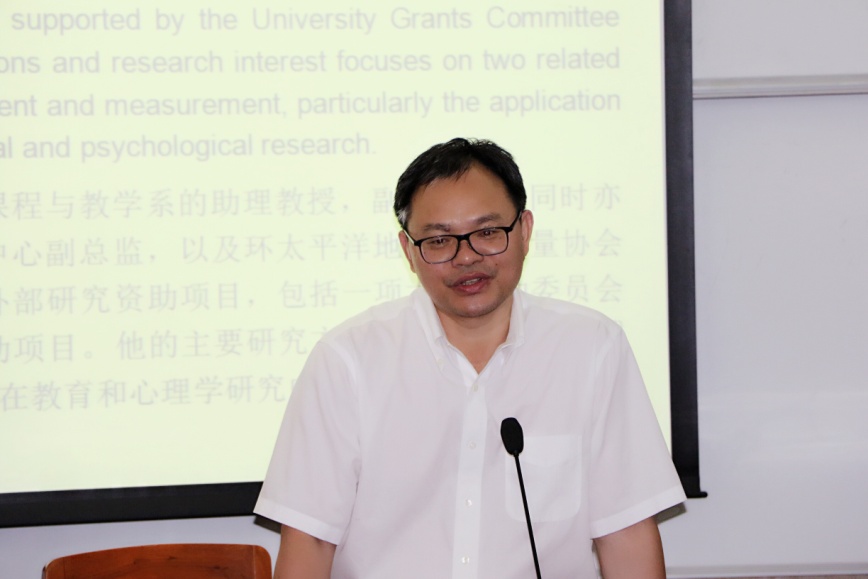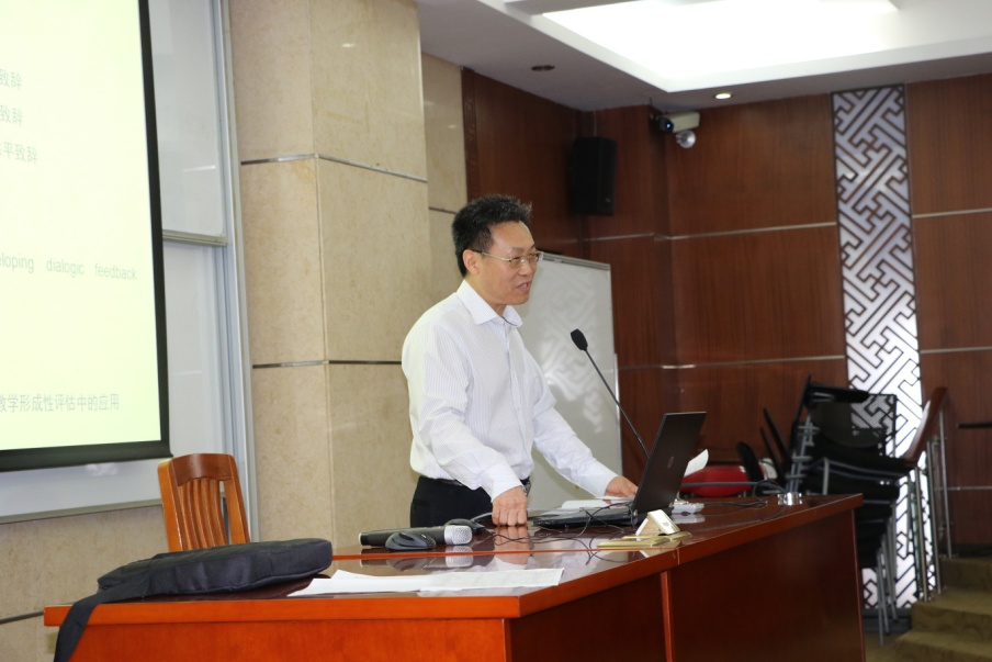 下午的工作坊由南方医科大学外国语学院副院长、国内知名的语言测试权威专家李清华教授做主旨发言。李教授介绍了近年来受到二语测评领域重视的全新评估理念——动态评估。李教授介绍了动态评估一直被忽略的测量功能和价值。讲座后,李教授又无私地分享了他的学术心得和经验,不忘对后辈学子的提携。