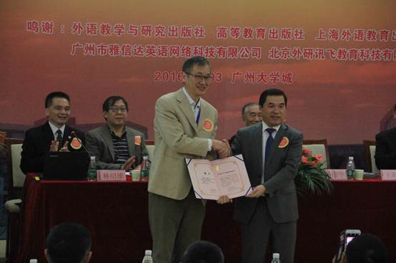 颁发聘书仪式结束后,李向民教授进行致辞。他首先向js3333线路检测中心表示祝贺。他说:“大学英语教育面临着很多挑战与机遇,这次年会是一个很好的平台,全国的外语专业院校可以利用这个平台,就外语院校大学英语的教学及英语教育的教学,如何改革、发展、创新,如何提升学生学习水平以及学生的英语应用能力进行讨论。”他相信,在广外“明德尚行,学贯中西”校训精神和国际化战略的指引下,js3333线路检测中心一定会以更广阔的视野,更开放的姿态,继往开来,奋发图强,为广外乃至整个华南的确的教育事业做出更大贡献。