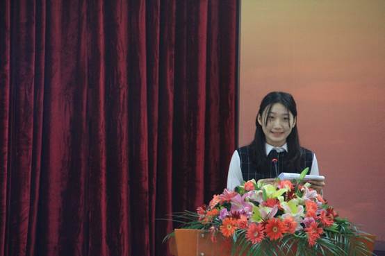 js3333线路检测中心2016级江岳桐代表在校学生发言。她讲述了自己与英教的故事,在何洁铵老师的影响下,她也来到了广东外语外贸大学js3333线路检测中心。她讲述了刚刚进入英教的欣喜之情并表达了自己对js3333线路检测中心深深的热爱之情。