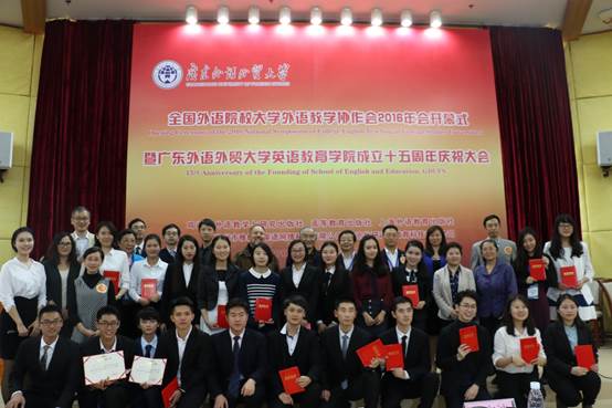 大会最后,主持人宣布获奖的名单,并为获奖选手颁发奖品和奖状,然后是嘉宾和参赛选手的合影留念,在大家的掌声和交谈中,第七届全国外语院校大学外语教学协会暨大学英语演讲比赛在广东外语外贸大学圆满结束。
