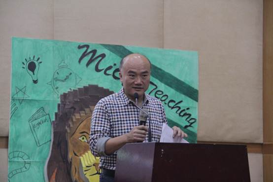 活动开始,董金伟院长应邀致辞。他首先提到,尽管Micro-Teaching师王争霸赛在参评今年的“十大校园文化精品”活动中未获成功,但这决不意味着失败。Micro-Teaching这一比赛能够坚持11年,中间还邀请过华师、广大的英语师范生来校参赛,这本身就显示出它的重要性和独到价值。Micro-Teaching是我校英语教育专业必要的教学环节,而师王争霸赛则是这一教学环节的课外延伸,是培养教师教学技能的有效方式之一。他还用一句引言说,一个人如果会教学,那他什么事都会做;而一个连教学都教不好的人,则什么事都难以做好。最后,董金伟院长希望选手们能够在决赛中充分发挥自己的水平,享受比赛的过程。