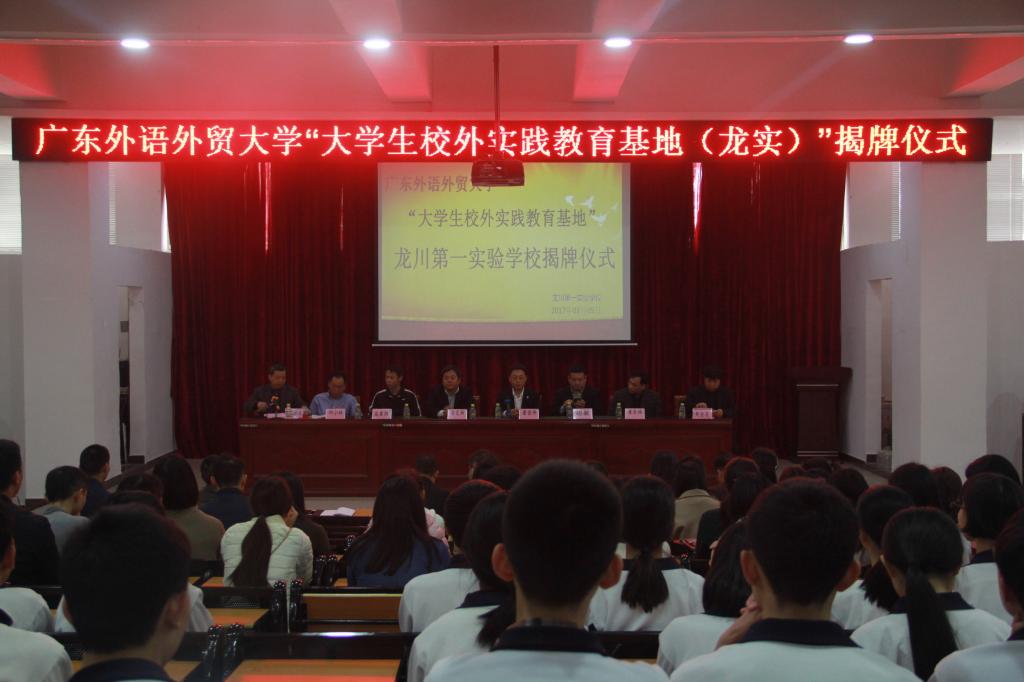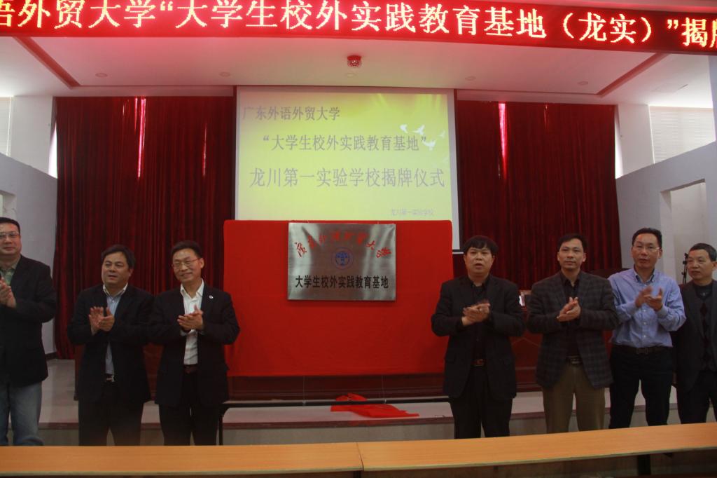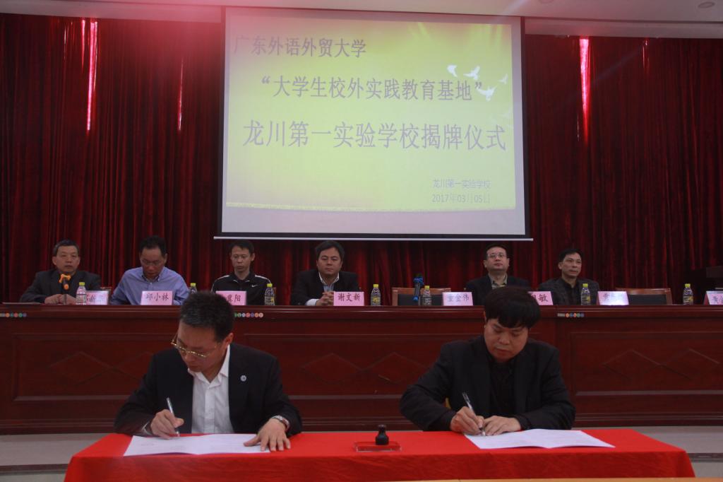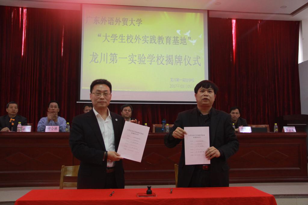 3月5日,线路检测中心与龙川第一实验学校(以下简称龙实)举行“共建实践教育基地”签约暨揭牌仪式,龙实成为线路检测中心在粤东北部,继梅县东山中学和梅州蕉岭中学之后建立的第三个学生专业实习基地。广东外语外贸大学js3333线路检测中心院长董金伟教授、人事处处长谢文新教授、广外js3333线路检测中心团委书记林泽龙、龙川县老隆镇镇长黄东林、龙川第一实验学校副董事长邱小林、校长黄金友等嘉宾领导出席了仪式。仪式由龙实常务副校长邓新华主持。