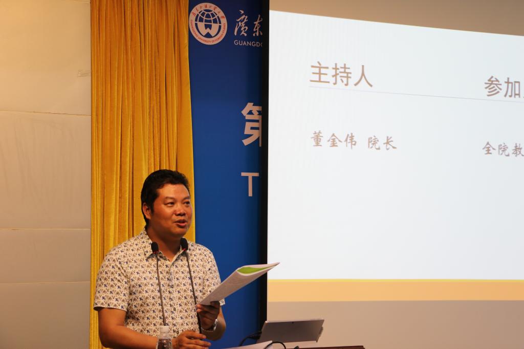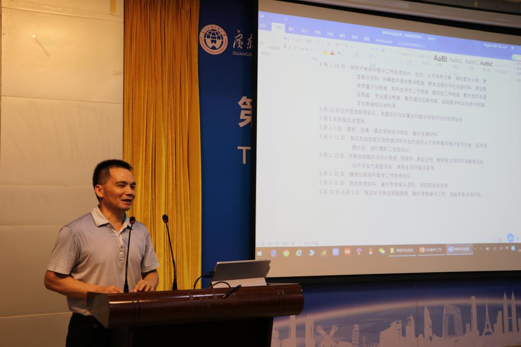 董金伟院长代表学院就迎评工作发表动员讲话。董金伟院长以他多次担任审核评估专家的经验,结合学校文件精神,传达审核评估工作重要性、严肃性。