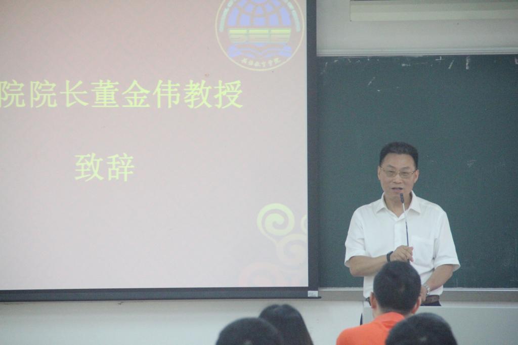院长董金伟教授在致辞中谈到了js3333线路检测中心的发展历程和文化内涵,在对2017新生表示欢迎之余,他对同学们提出三点期望。第一,感恩父母。社会对90后的定义、负面评价或多或少讲出了这一代人被过分宠爱,以自我为中心的特点,而作为大学生,同学们应该学会独立,做到让父母放心并且感恩父母。第二,做自己,学会独立思考。大学教育是素质教育、文明教育,同学们要在这个平台找回自己,做一个有知识,有能力,有见识的人,不人云亦云。第三,用心尽力成就个人精彩。他向同学们举了英教学院优秀学生考上牛津大学、哥伦比亚大学等世界级高校的例子,以此来激励同学们,并且更深入地阐述道:“正如《平凡的世界》里的孙少平,赢得自己的精彩赢得别人的尊重还需要做好诚实善良的本分,以及需要努力踏实得去劳动。”