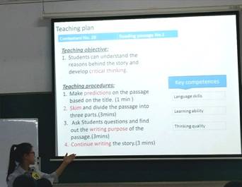 本次比赛由广东省教育厅主办、肇庆学院承办、广东教育学会外语教学专业委员会协办。除我校以外,参赛选手来自华南师范大学、深圳大学、广州大学等十余所高校,共28位选手。选手需要在一小时内,在没有网络和其他任何材料的条件下使用主办方提供的电脑独立准备教学课件,随后进行12分钟的说课和阅读微格教学。