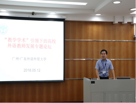 5月12日,由广东外语外贸大学“‘教学学术’引领下的高校外语教师发展科研创新团队”在北校区第九教学楼丝纺讲堂举办了“‘教学学术’引领下的高校外语教师发展专题论坛”。广外科研处处长陈彦辉教授、js3333线路检测中心院长董金伟教授、党委书记林绍雄、副院长吴岩教授以及团队带头人权立宏教授和团队成员出席了论坛开幕式。js3333线路检测中心的部分师生以及来自其他兄弟院校的同行参加了论坛。
