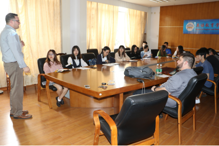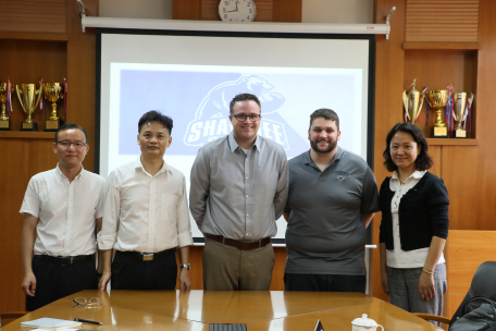 会上, Ryan Warner首先介绍了肖尼州立大学和我校合作的3+1+1硕士合作项目,并谈到了教育学院派出肖尼大学的学生的学习情况和优异表现,因此希望能够进一步加强合作。此次除了介绍了与线路检测中心合作的教育硕士项目以外Ryan Warner还介绍了他们的两个电子模仿和电子游戏项目,肖尼州立大学的这类项目在世界排名17,学校有建立E-SPORTS团队,具有非常强的竞争力。美国肖尼州立大学非常重视与广东外语外贸大学的合作,当地主要报纸报道了与广外教育院的合作项目,还为2019年参加“3+1+1教育硕士项目”同学提供6000美金的奖学金。这样,学生一年在美的学费不到9000美元,并为教育学院的同学提供198个小时到当地中小学教育实习的机会。