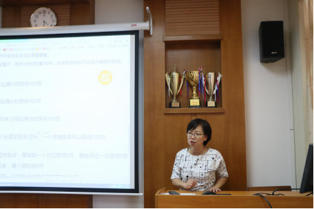 接着,杨满珍副教授详细介绍了我校基于形成性评价的大学英语教学改革。她指出,如何评价学生的学习态度、学习能力,提高学生参与学习的程度,是形成性教学评价模式探索的重点。形成性评价教学模式是借助现代信息技术,在外研讯飞开发的FiF云学习平台上,以“课程币”为衡量单位,制定合理的课程评估计划,动态记录大学英语的“教、学、评”全过程,并形成可追溯的学生电子学档。在整个过程中,学生明确学习目标、重视学习过程、参与并成为评价的主体,提升学习课堂参与的积极性和课外自主学习的主动性。