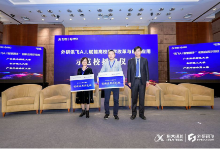 会议的最后,由外研讯飞相关领导为在智慧教学/外语教学探索、智慧课堂建设与智慧测评方面成绩突出的学校授予“讯飞A.I.智慧外语教学 ”、“讯飞A.I.智慧教学 ”、“讯飞A.I.智慧课堂 ”与“讯飞A.I.智慧测评 ”创新应用示范校铜牌。线路检测中心杨满珍代表学院接受“智慧测评创新应用示范校”授牌。今后继续在信息技术人工赋能下探索大学英语教学改革与模式创新。