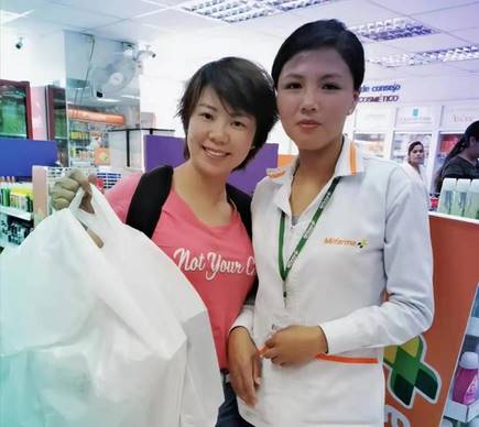 江玉(左)在秘鲁药店购买口罩
