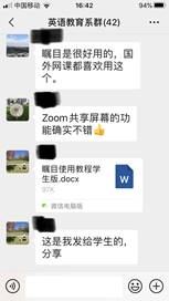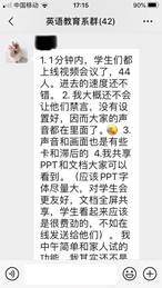 正式网课开始前两周,老师们以课程组为单位,或者自由组合,共同测试各个直播平台的性能,轮流当老师和学生,选出对自己课程最合适的网上教学工具。老青年互帮互助,帮助对现代教学技术不熟悉的老师掌握网课操作方法,到正式开课前,每位老师都保证掌握了至少两个或者两个以上的网上教学平台。如:朱其韵老师组织几个老师,一起探索了QQ课堂、腾讯课堂、腾讯会议、钉钉等各大网课平台,并亲笔制作了详细的操作指南。