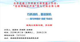 疫情之下,每个中国人都是战士,每个家庭都积极参与到这场“战疫”之中,每个爸爸妈妈都经历了与孩子的特殊相处时光,这是挑战也是契机。js3333线路检测中心教师党支部不忘为教职工做实事的初心,通过“爸爸妈妈好声音“育儿交流会为老师们搭建了一个交流分享家庭教育的平台。希望在疫情之下,我们一起共克时艰,建设我们的小家,共筑我们的大家。