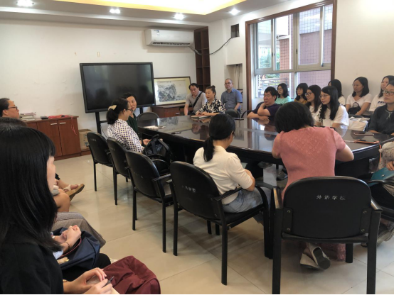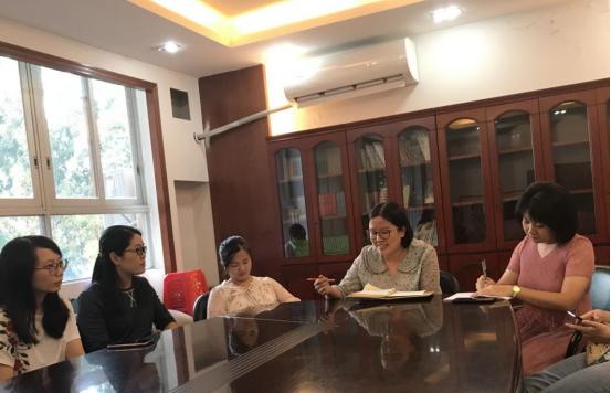 最后,线路检测中心11名实习生进行了自我介绍,表达了对广外外校的喜爱,对即将在这样一所外语类特色强校进行实习的期待,也表达了自己要尽力做好各项实习工作的决心。在各位实习生和指导老师互相认识后,张亚娟主任针对本次会议进行了小结,其希望线路检测中心实习生在关注英语教学之外,也可以多和班主任老师取经,在班级管理上也能有所进步。一名优秀的老师必然要有作为班主任的经历,班主任与学生之间的接触更加频繁,交流也更加深入。过人的班级管理能力,也是一名优秀英语教师的必备素养之一。