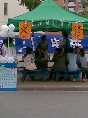 又逢雷锋月,这次英教学院与信息学院本着“服务他人、发展自身”的目标,一起合作开展服务一条街活动。在20号与27号这两天,他们在校道为同学们提供推拿义诊与电脑义修服务。