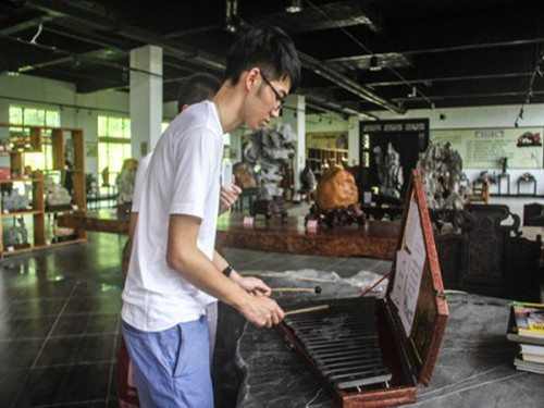 杨健老师正在调试石琴