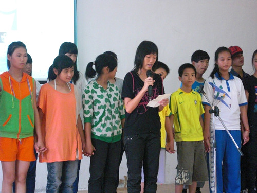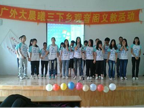 队员们和同学们为闭幕式准备了精彩的演出。首先由一首悠扬的镇歌《名叫观音的地方》为表演节目揭开了序幕。其后,动感炫目的街舞跳跃,幽默诙谐的话剧表演,催人泪下的合唱等各种各样的节目的精彩奉上。同学们的掌声源源不断,高潮也就持续不断。最后,闭幕式在晨曦三下乡服务队队歌《明天,你好》的合唱中,和着同学们不舍的哽咽和泪水中落下了帷幕。当对歌轻柔的前奏响起时,同学们纷纷站起来,和着拍子与队员们合唱。这时,和谐的场面洋溢着绵绵的温情、真挚的师生情谊。