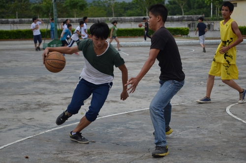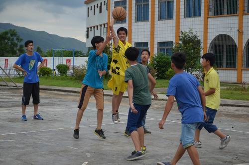 7月25日下午,大湾中学夏令营班际篮球赛的哨声吹响。