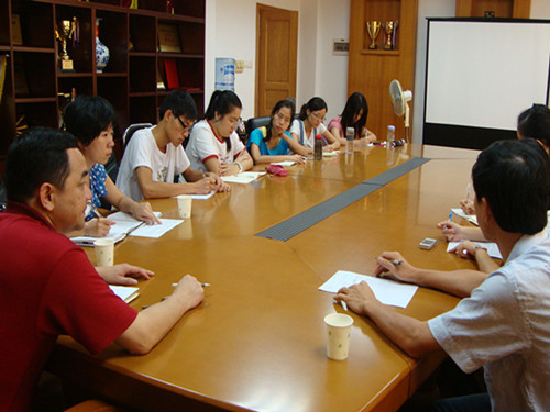 会中,曾主任也真诚地提出了个人的想法。曾主任希望每个队长都要跟下乡基地和指导老师密切联系,深入了解当地学校的情况,确保下乡准备工作的充分。曾主任更特别提出,每一个下乡队伍既要确保队伍的安全问题,也要承担起当地学生的安全责任,对此要作出相应的对策。辅导员迟殿凤老师也针对保险问题和校园网投稿的问题作出了相应的说明,校园新闻栏目上是只需要每个队伍的一篇后期投稿,团学时空栏目上是只需要每个学院投一篇稿子,队伍之间要互相协调。至于如果有媒体采访的稿件可往媒体广外栏目上进行投放,不设限制。