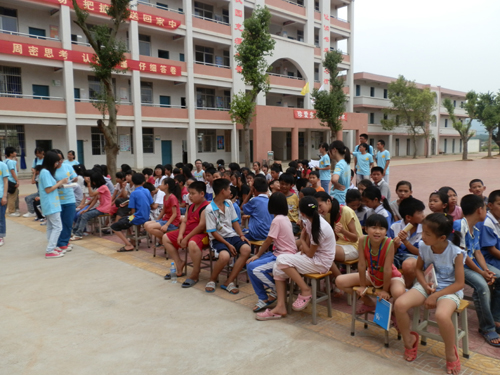 下午,首先是我们的班会。看着一个个渴望求知的眼睛,听着一句句探索知识的疑问,我们感到很欣慰,因为至少我们两个月的准备不会白费,再苦再累也都是值得的!接着便是我们重磅出击的开幕式!学生们早已经在开幕之前做好了自己观众的角色,各个翘首期待等着自己老师的表演。开幕式开始是望埠初级中学华校长发表重要讲话,讲话中我们可以感觉到望埠校方对我们的欢迎,同时队员也感到沉甸甸的责任感。而js3333线路检测中心何书记的一番讲话,更让望埠队的队员们感到我们代表的不只是一个三下乡队伍,而是整个广东外语外贸大学,我们的一言一行将是广外学子的一个个剪影!接下来队员们热情洋溢的表演引来了学生们一阵阵的欢呼。而我们整组队员,也用我们的精彩表演诠释了什么是爱,什么是责任。