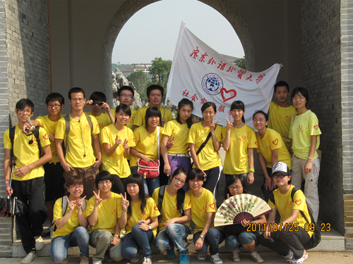早上七点半,二十一名队员梳洗干净,整理着装,抖擞精神。八点半,本应因为放假而静谧的会议室却出奇的喧闹——二十一名穿着黄灿灿三下乡队服的“大朋友”正在好不热闹地议论着今天出游的目的地——英石园。九点十五分,在政府领导和学校领导的协助下,心之望服务队以队旗作为“开路先锋”,浩浩荡荡的出发了。