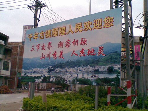 这引人注目的牌子,无声地矗立在大路中间,正在欢迎着我们这群匆匆的过客。这片平静祥和的地区,是否也在期待着些什么呢?