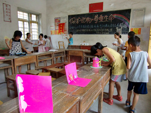 7月29日,一场以“保护动物·尊重生命”为主题的画画、手工比赛在清远英德大湾队的义教地点之一——中心小学举行。本次比赛旨在配合本次三下乡“保护动物”的宣传主题,同时激发孩子们爱护动物,尊重生命的意识。