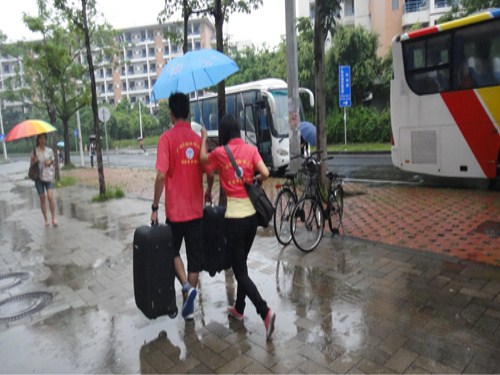 早上7点30分,线路检测中心梅州风信子下乡队伍集中在中行门前整装待发。队员们拎着自己沉重的行李,穿着鲜艳的队服,对此次下乡之旅充满了期待。谈起那些乡镇的孩子们,队员们的眼神里都充满着希冀。尽管当时下着暴雨,队员们在搬运行李时遇到了困难,但线路检测中心领导们的关心以及“风信子”成员之间的互助,让每位队员都感受到了集体的温暖。