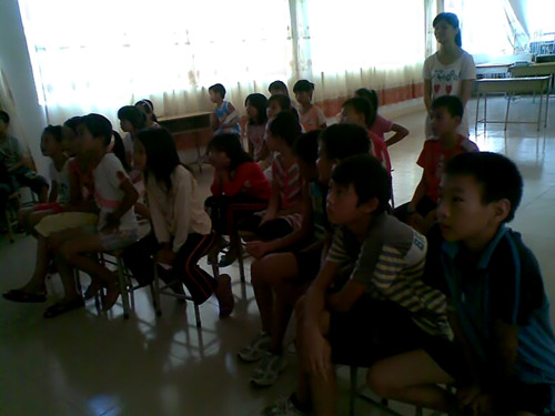好不容易将兴奋的孩子们安定下来,我们便开始播放视频。孩子们端正的坐着,一双双小眼睛都睁得大大的,聚精会神地看着屏幕。看着孩子们那一双双睁大的眼睛,我内心深处的一个小角落被触动了。那是怎样的一种眼神?充满好奇和渴望,洋溢着天真和烂漫,让人不能不为之动情。
