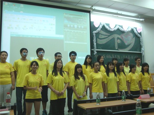 这次的总结大会主要是对2010年三下乡活动进行回顾展示以及点评。参加本次三下乡活动的108名同学分为三支队伍,它们分别是湛江企水队、清远英德大湾服务队以及肇庆“梦之端”服务队。