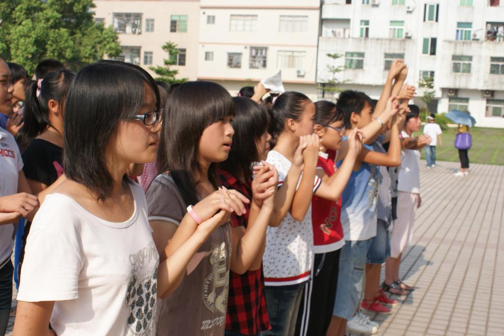 8月2日早上8点30分,清远大湾服务队英语夏令营的闭幕式在清远市英德大湾中学隆重举行。早上7点半,大湾中学、中心小学和小联小学的几百名学生以及32位清远大湾服务队的队员们就早早地到达大湾中学。出席这次闭幕式的领导嘉宾有大湾中学的刘国林主任、中心小学的梁国球主任、广东外语外贸大学三下乡指导老师陈诗金老师。尽管骄阳似火晒得大家大汗淋漓,却晒不灭全场观众对闭幕式的期待。