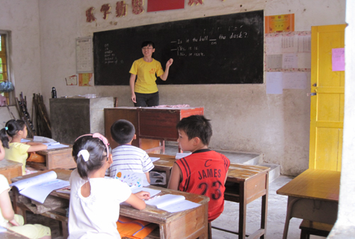 作为学校年龄最小的年级,三年级的小朋友们格外活泼,时而冲出教室,时而静坐班中,时而友好成群,时而打打小架,给任课老师带来了笑声,也带来了不少麻烦。四年级有过半学生已是第二年参加我队义教活动,学生的迅速的适应和老师的丰富经验让该年级在第一天的教学中相当成功。鉴于英语占据了我们绝大部分的课程,负责四年级的队员特地为同学们编了一本语文教材。当其他年级的同学还在操场上茫无头绪地徘徊或是满头大汗地追逐时,四年级的同学读书正酣。《三字经》、《百家姓》和经典诗词引来了不少同学围观。下午一放学,队友们就带着同学们到操场进行运动,帮助学生养成坚持锻炼身体的好习惯,为学习打下坚实的身体基础。