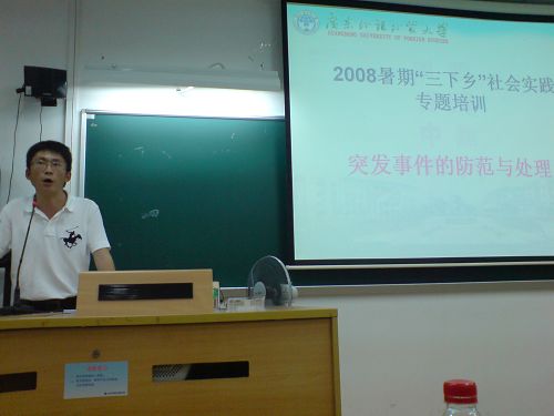 7月4日晚线路检测中心“三下乡”专题培训会在F107教室举行。此次专题培训的主题为“突发事件的防范与处理”,主讲人是经贸学院的郝光老师。即将参加08年暑期三下乡社会实践活动的队员出席了这次会议。