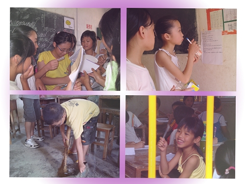 7月18日,教育学院清远队面向大湾镇大湾中学、中心小学、小联小学的义教历程正式开始,将于7月29日结束。义教内容按专题划分,分别为综合英语、交际英语、快乐阅读、中外文化、奥运知识、生活常识、语音语调、英语语法、英语写作等。每一专题下又分许多不同主题,如综合英语包括“家庭成员”、“花与茶”、“交通工具”、“职业”等主题,内容丰富多彩,形式灵活多样。