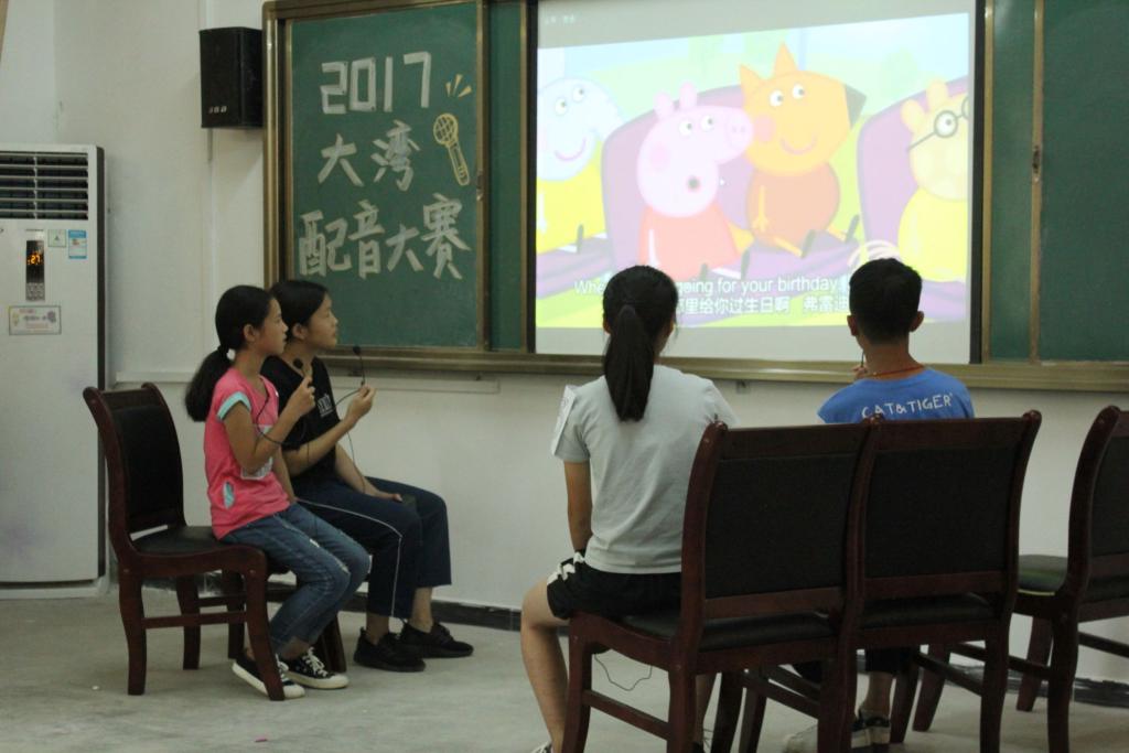 7月20日下午,2017清远大湾夏令营英语配音大赛在大湾中学阶梯教室举行。大赛评委由大湾服务队队员黄玉华、廖慧欣、翟曼晴和陈凯莹担任,参与本次大赛的还有大湾服务队的全体队员以及参加夏令营的全体学生。本次大赛旨在活跃学术气氛,激发大湾中学学生对英语的热情,提高学生的英语语言素养,展示学生们的英语风采。经过激烈的角逐,最终“Spiderman队”获得了团体奖一等奖,何晓雯获得了个人奖一等奖。