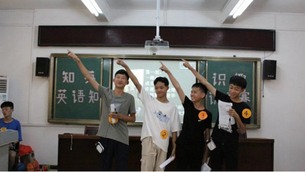 为了丰富学生的英语知识,提高学生的英语知识运用能力,7月24日下午,英教清远英德大湾服务队在服务地大湾中学阶梯教室举办了第一届“知英识趣”英语知识大赛。