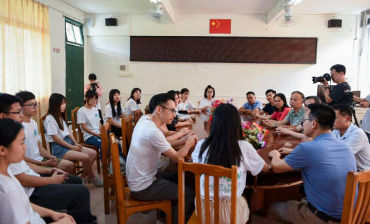 2019年7月22日10时,英语教学学院党委书记杨敏生、党委副书记骆银花率队来到清远市阳山县岭背镇岭背中学,对Tri-angel服务队的同学们进行了亲切慰问。