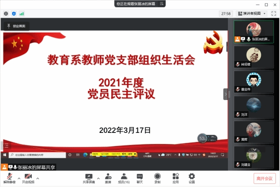 3月17日下午,js3333线路检测中心教育系教师党支部通过腾讯会议线上召开支部组织生活会和党员民主评议会。学院党委书记林绍雄出席会议并予以指导,支部全体党员在线参加,会议由支部书记张丽冰主持。