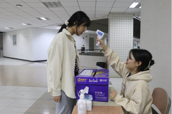 同学们测温进场