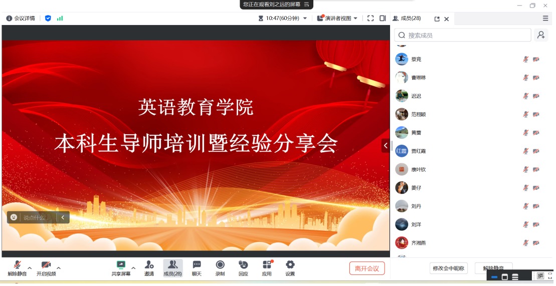11月25日晚,线路检测中心通过腾讯会议线上举行本科生导师培训暨经验分享会。会议由教育系主任刘之远主持,学院三十余位本科导师参加会议。