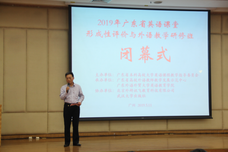 5月11日,2019年广东课堂形成性评价与外语教学研修班在我校北校区图书馆报告厅举行,本次研修班由广东省本科高校大学英语课程教学指导委员会主办,我校广东省高校外语教师教学发展示范中心和js3333线路检测中心共同承办,我校副校长刘建达,教师发展中心科长陈思,js3333线路检测中心院长董金伟、党委书记杨敏生、副院长吴岩、副书记骆银花及学院80多名专业教师,以及来自全省20多所高校近100多名大学英语教师参加了此次研修班,共同聚焦学习基于形成性评价的大学英语教学体系。研修班开幕式由董金伟主持。