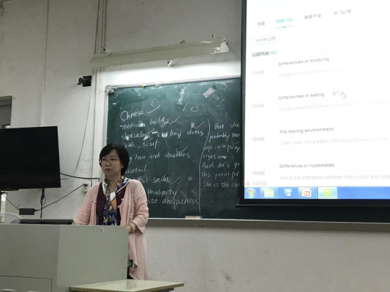 最后,杨满珍老师从形成性评估教学理念的角度对吕老师的课堂进行了深层次解读。杨老师,是形评教学团队的带头人和推进者,理念深入贯穿于整个教学过程,教学方法多元化,灵活多样。为了确保FIF平台的合理使用,杨老师与各位老师交流心得体会。