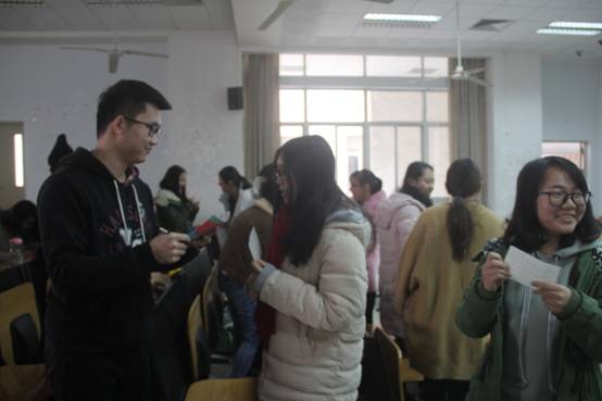 在解释完毕后,王亮在现场为同学们组织了一系列活动。第一个活动是一个名为“请送3个词”的小游戏,同学们之间需要用3个正面的词语来形容对方,每位同学需要收集30个词语并选出3个最打动自己的词语作为鼓励自己的力量源泉。在王亮教练示范过后,同学们纷纷离开自己的座位,向别人赠送词语。现场的气氛非常热烈,同学们参与的积极性都非常高。在一轮游戏结束后,王亮对这个游戏的意义进行了解释。她告诉同学们,在职场中,批评远比表扬要多。她希望同学们无论遇到多大压力,都要学会自我激励;即使没有掌声,也要坚持走自己的道路。