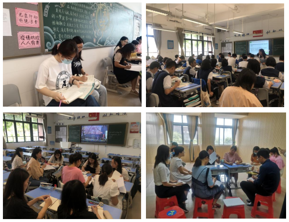 南沙华附中学是一所完全中学,五名同学分别被安排在初中和高中实习。学校鼓励大家参与跨年级的教研活动,积极向优秀教师们学习。短短两周,大家已经参与了初一音标教学示范课活动、初二阅读教学示范课与科组评课活动、高一“同课异构”活动和高三教研活动,得以观摩高质量课堂教学,领略各具特色的教学风采,聆听老师们无私地分享教学“诀窍”。其中,高三教研活动是南沙区教研员黄碧霞老师来参加指导的活动,大家有幸全程参与了迎接教研员、观摩高三老师公开课、参与教研员评课等系列活动,并被鼓励说出自己的想法,受益匪浅。