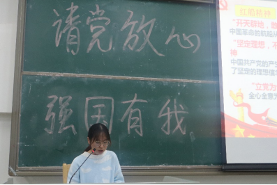 杨思华作“学习与继承党的伟大精神,做强国有我的新时代青年”的党史宣讲。她介绍了革命精神、艰苦创业精神等中国共产党精神的来源,向大家展示了开天辟地的红船精神、艰苦奋斗的长征精神、勇于开拓的革命精神、谦虚谨慎的西柏坡精神以及中国特色社会主义新时代的伟大奋斗精神,号召同学们勇于承担时代重任,用英语讲好中国故事。