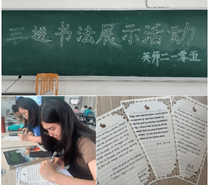 《习近平谈治国理政》英译本名言书法展示活动,将学习习近平新时代中国特色社会主义思想与英语书法技能相结合,通过寓教于乐的书写展示,加深了同学们对《习近平谈治国理政》的了解和学习,也有很多优秀书法作品脱颖而出。